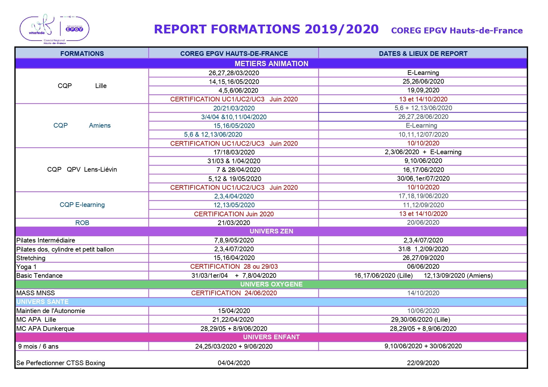 Formations 2020/2021